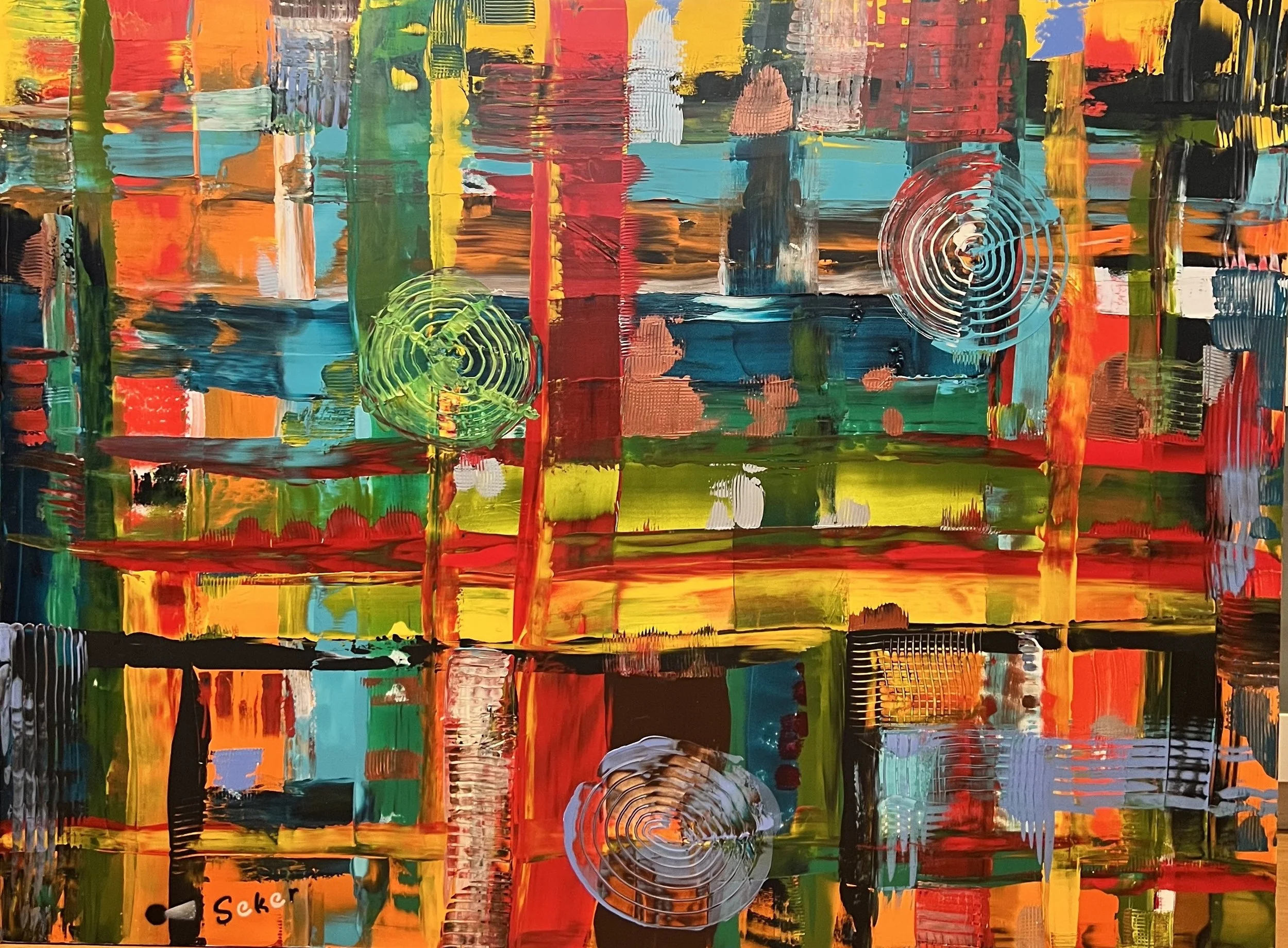 Tony Seker is a contemporary abstract painter whose work explores the interplay between chance and intention, memory and movement. Born in Beirut and shaped by a life lived across cultures, his practice reflects themes of displacement, belonging, and the unseen forces that shape identity. Working with layered color, texture, and gesture, Seker creates dynamic compositions where process remains visible and meaning evolves over time.